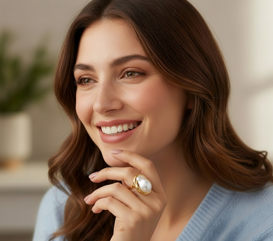 Gouden Ring met Barok Parel - Unieke Zoetwaterparel Ring