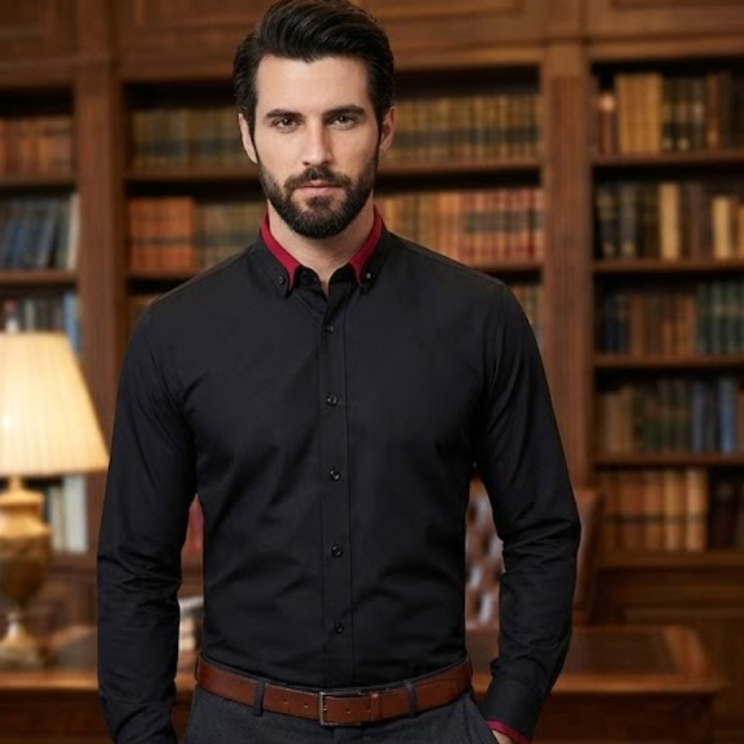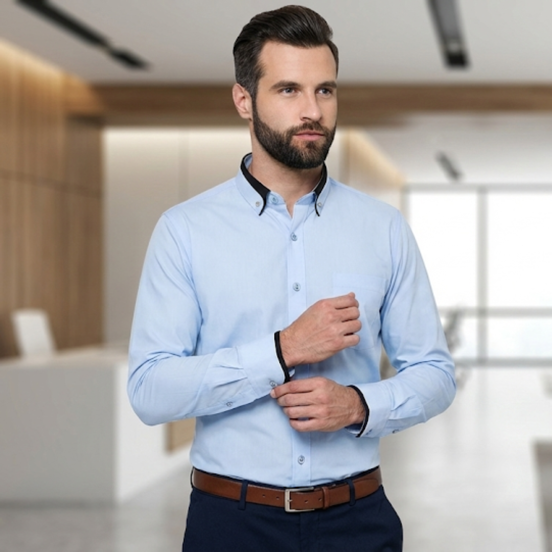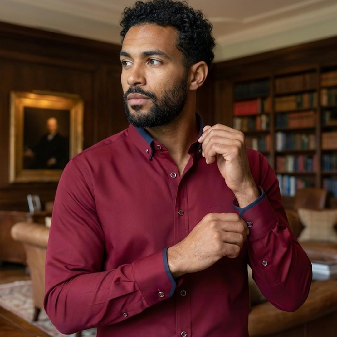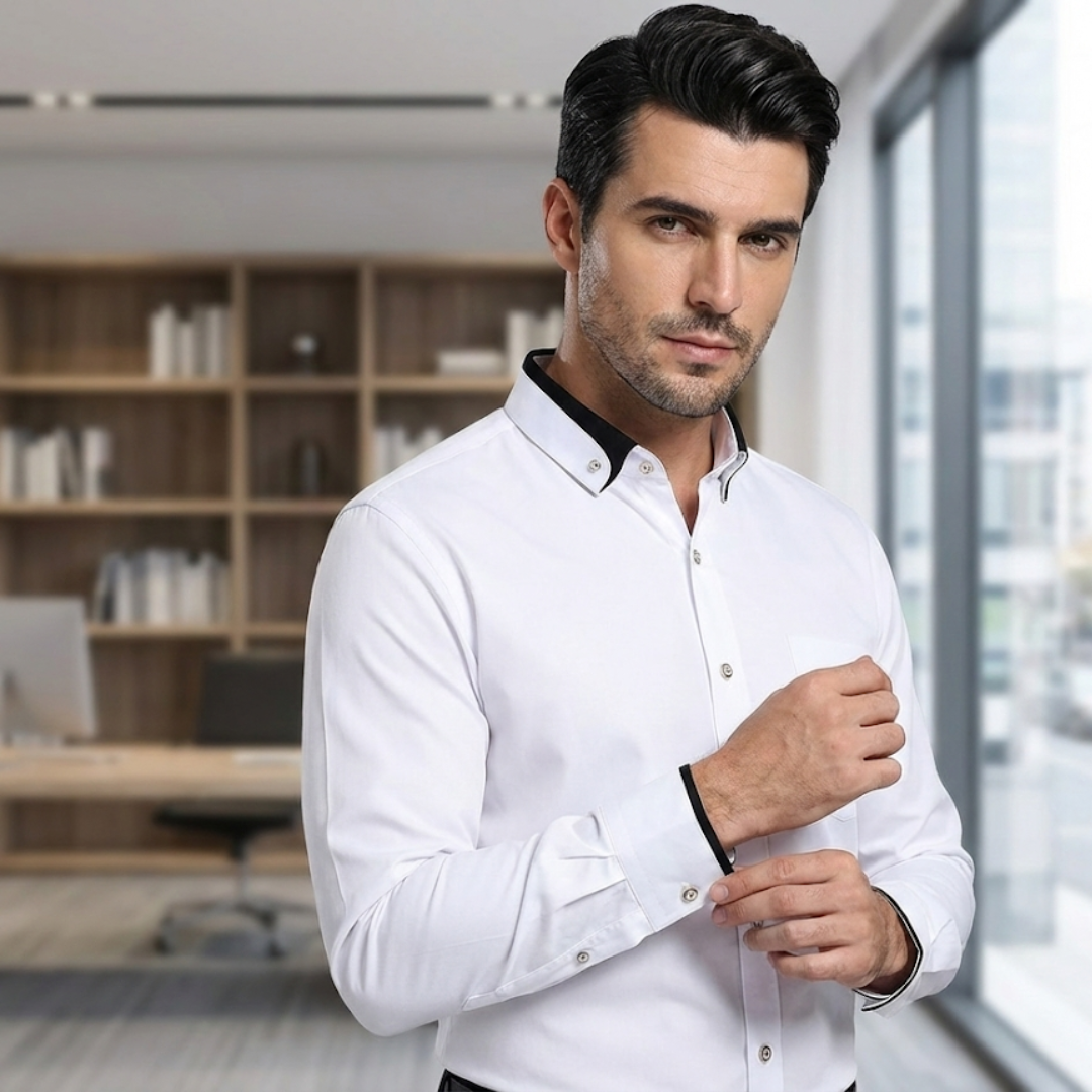 - Uniek Design: De dubbele kraag en manchetten zijn afgewerkt met een subtiel kleurcontrast. Dit maakt het overhemd een echte eyecatcher, of je nu je colbert uittrekt op kantoor of aan de bar staat.