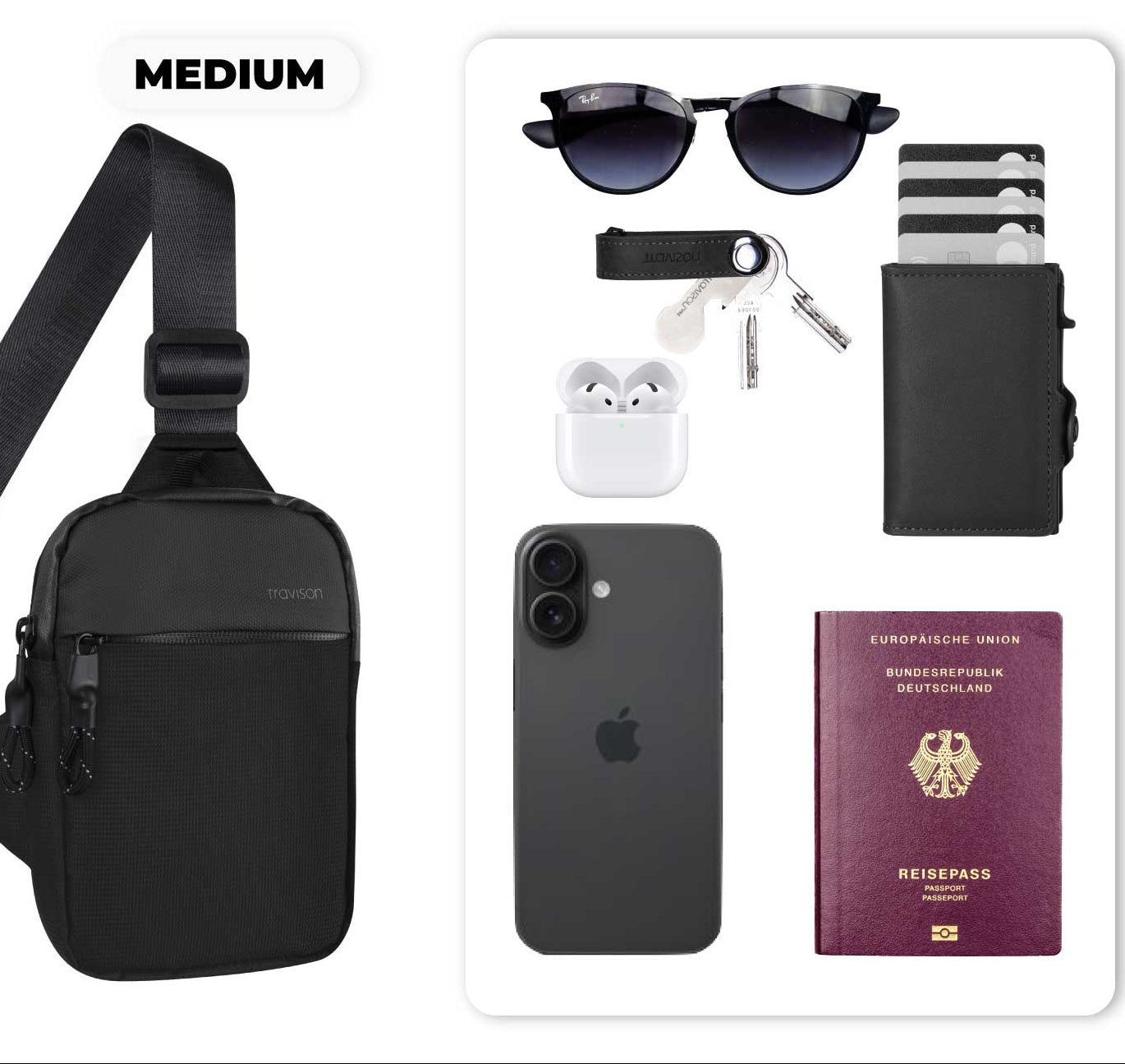💧 Waterafstotend Materiaal: Laat je niet verrassen door een regenbui. De hoogwaardige stof beschermt je telefoon, paspoort en elektronica tegen vocht en spatwater (zie afbeeldingen).