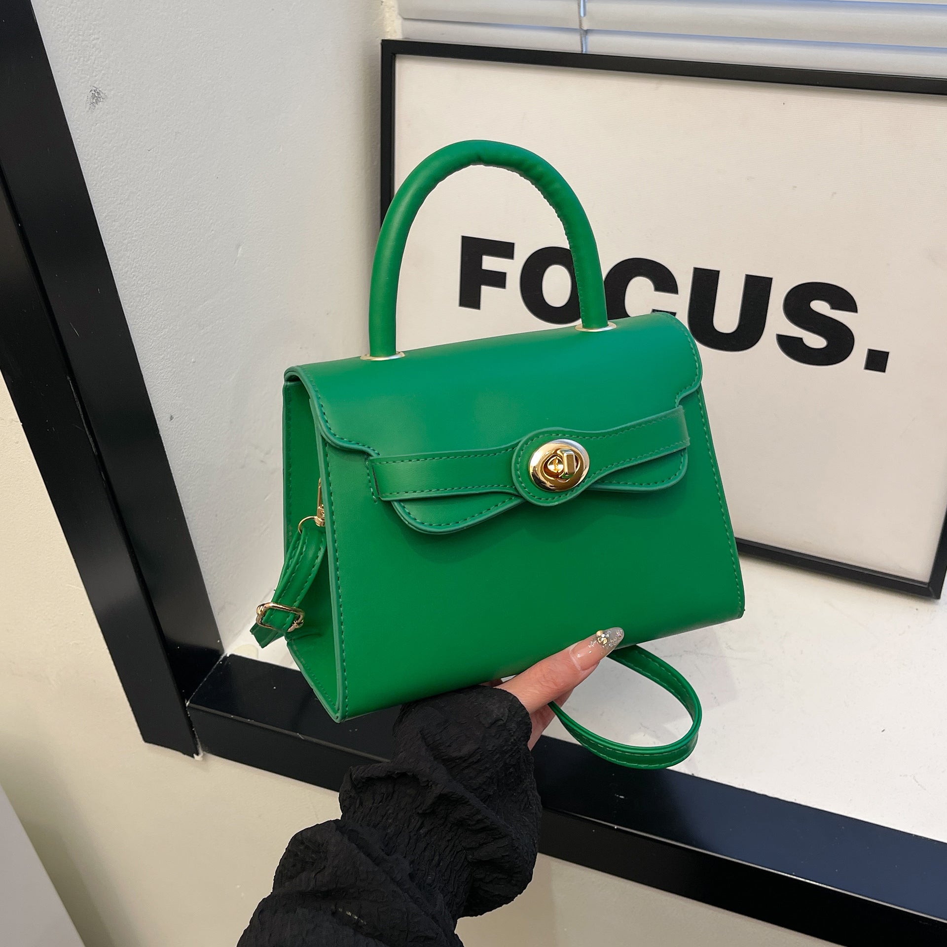 Maak je outfit compleet met de charmante Sophie. Deze compacte handtas is dé perfecte accessoire voor zowel een chique diner als een dagje shoppen. Het gestructureerde ontwerp en de goudkleurige draaisluiting geven de tas een luxe uitstraling die direct in het oog springt. Draag hem elegant in de hand aan het stevige handvat, of klik de riem vast om hem comfortabel over je schouder te dragen.