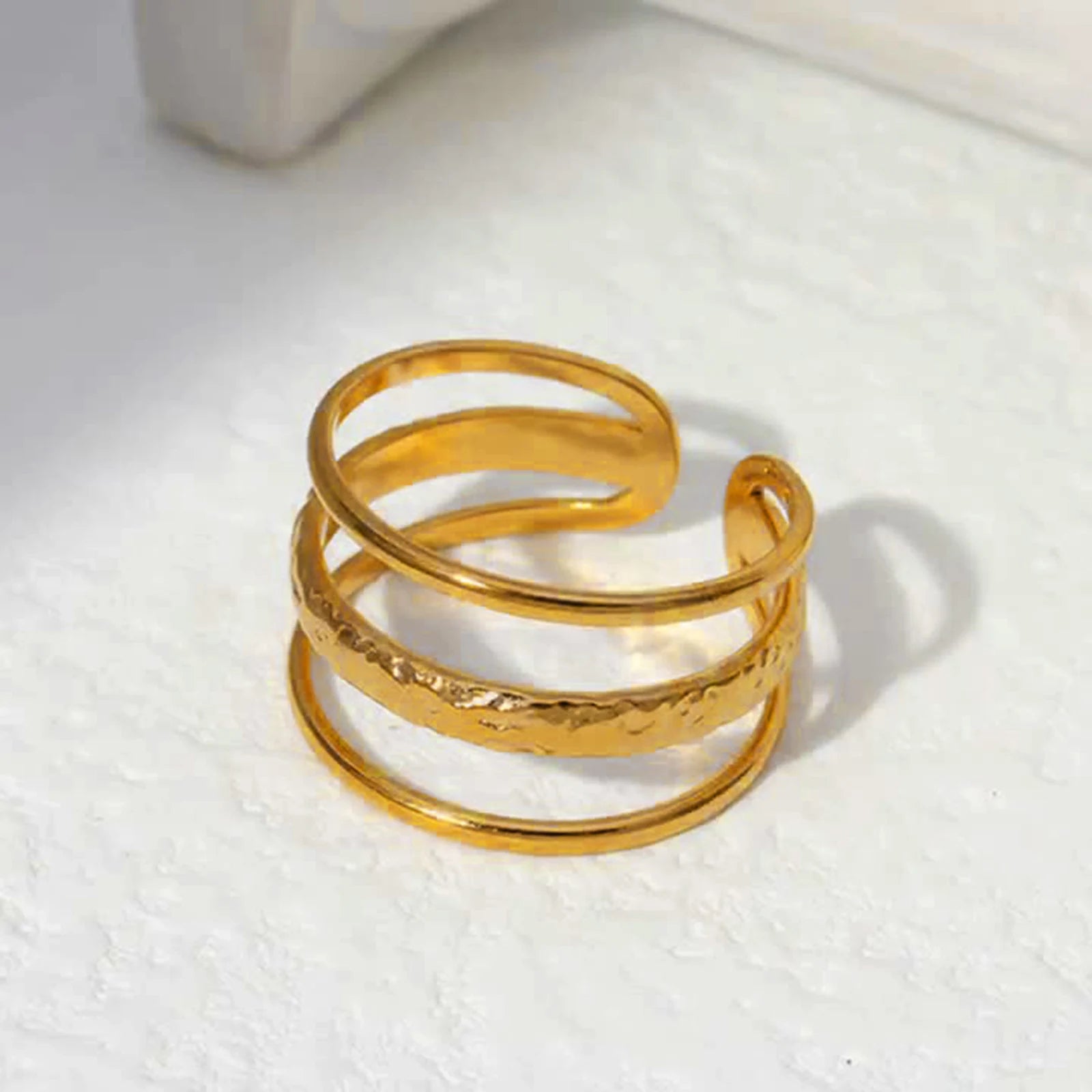 Droom je van een sieraad dat niet alleen je look verrijkt, maar ook een verhaal vertelt? Dat ene item dat je van 'gewoon' naar 'buitengewoon' transformeert? Maak kennis met de 3-delige statement ring. Deze ring is ontworpen voor vrouwen die durven te schitteren, die geen genoegen nemen met minder en die geloven dat luxe toegankelijk moet zijn. Het is jouw dagelijkse herinnering aan je eigen kracht en stijl, een verfijnde toevoeging die je uitstraling verdiept en je zelfvertrouwen een boost geeft.